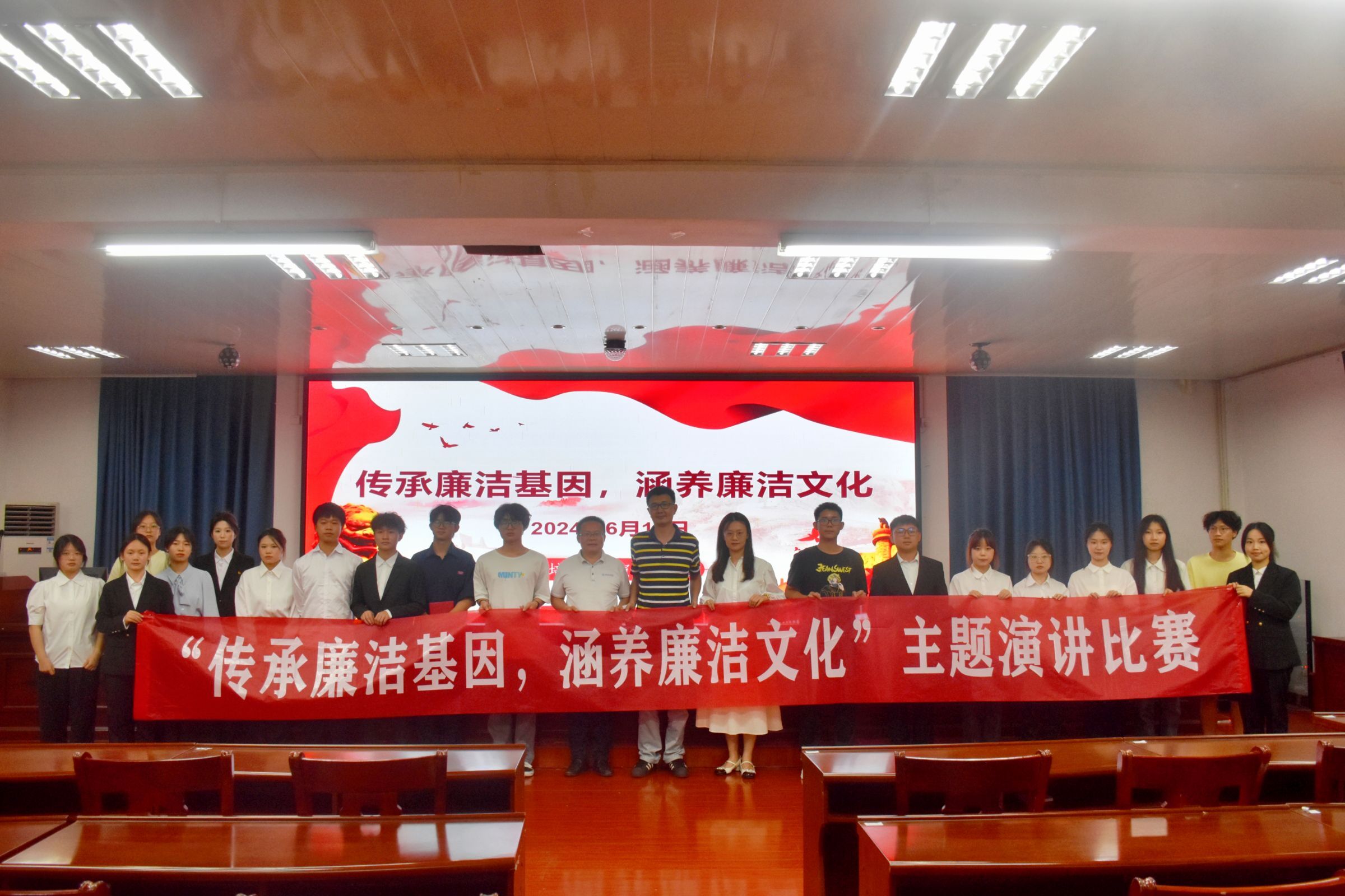 本次比赛为学院党风廉政建设系列活动之一,共有15位选手参赛,均为学院2024年上期入党积极分子培训班的学员。比赛现场,选手们紧紧围绕“传承廉洁基因,涵养廉洁文化”这一主题,立足实际和成长经历,结合历史故事和身边事例,阐述了自己对“廉洁文化”的理解和追求。